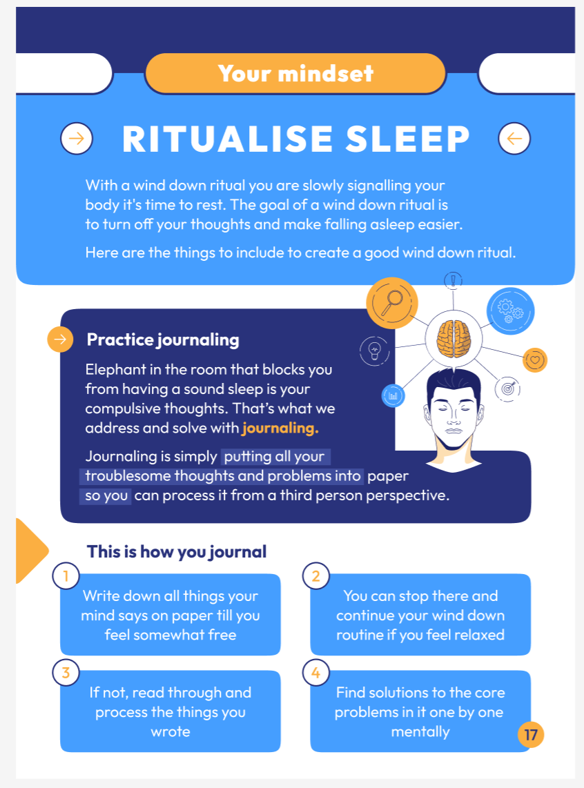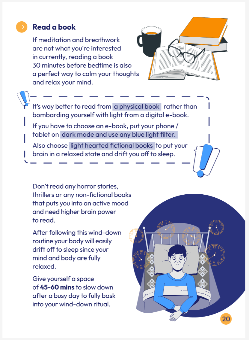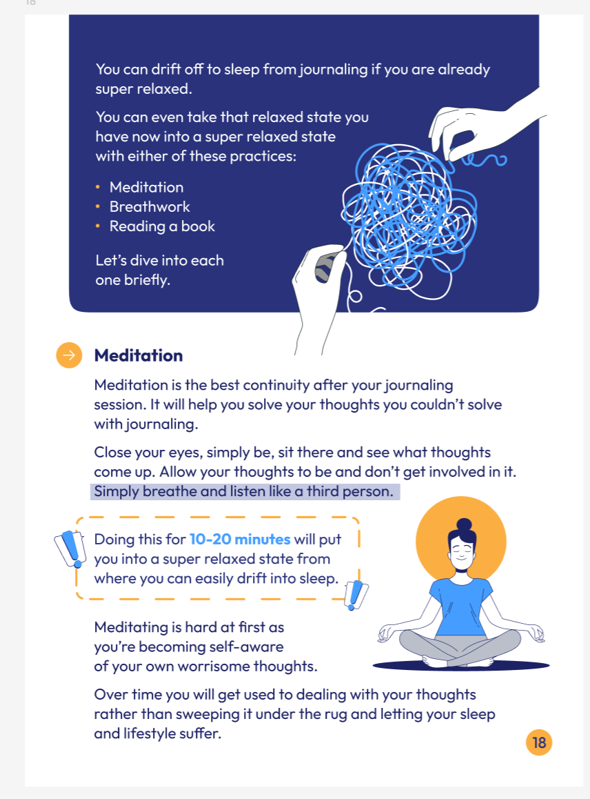 Notre guide gratuit présente des techniques étape par étape, étayées par la recherche, pour apaiser un esprit agité et signaler à votre corps qu'il est temps de dormir. Grâce aux instructions claires d'experts du sommeil, nous sommes convaincus que ces méthodes sont à la fois pratiques et efficaces.