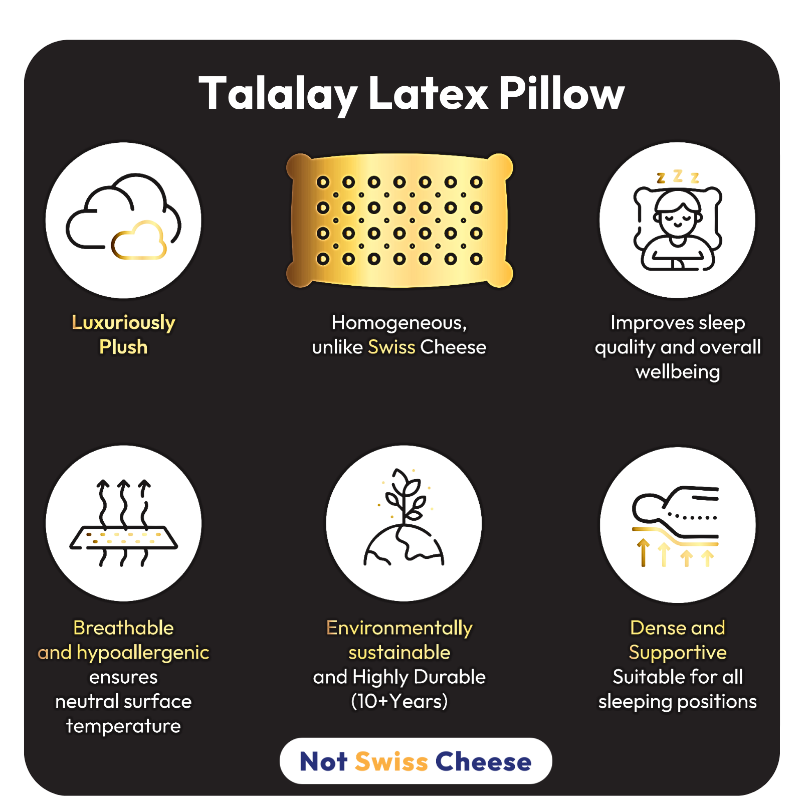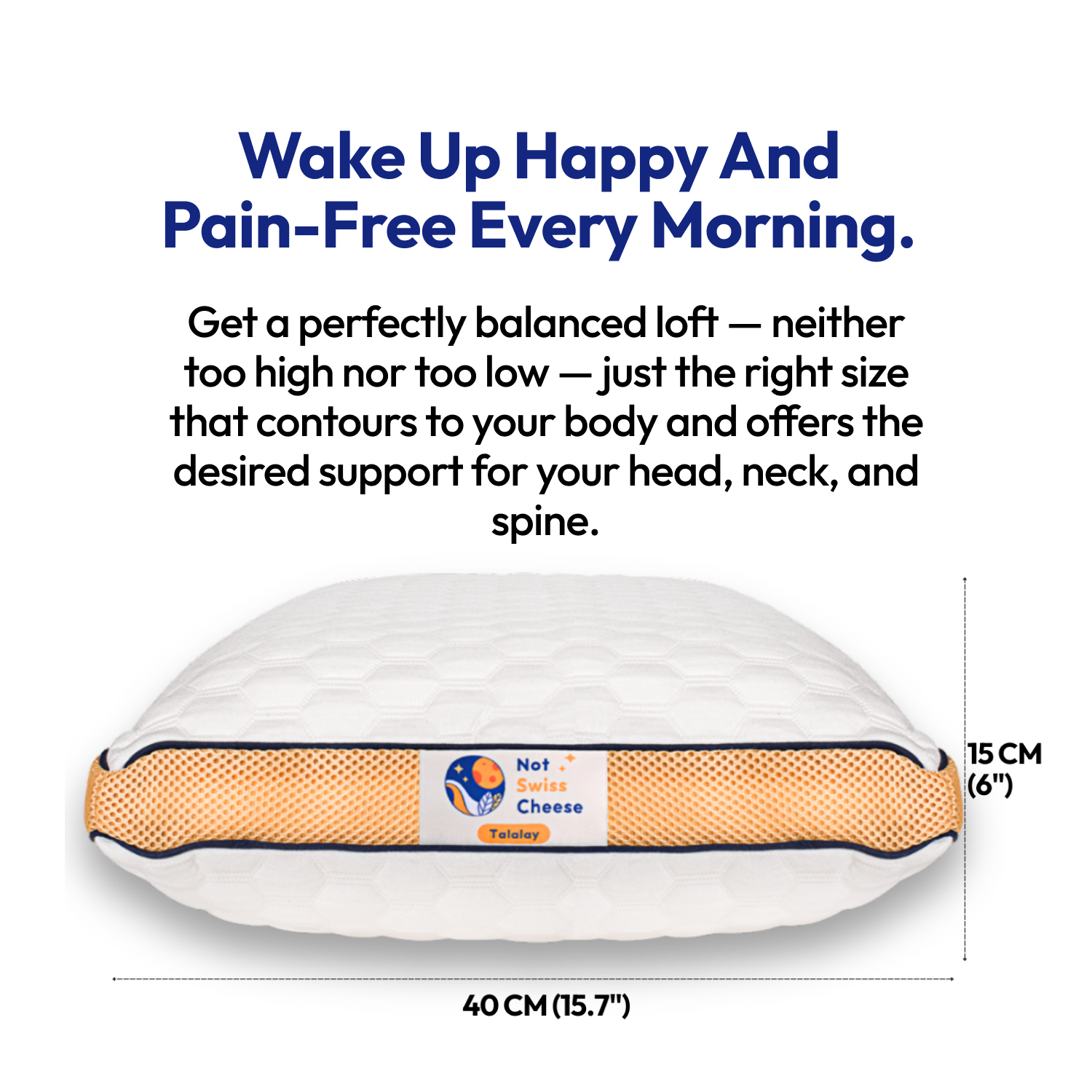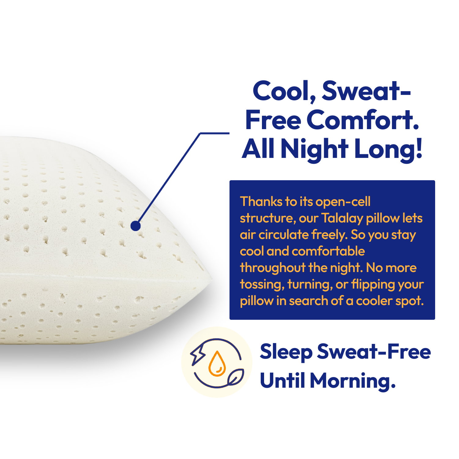 A Talalay latex pillow feels soft yet supportive, with a plush surface that gently cradles your head and neck. Unlike memory foam, which can feel dense or sink too much, Talalay latex has a springy, buoyant quality that keeps your spine aligned while still feeling luxuriously comfortable.